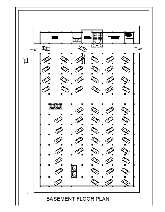 46x76m office basement plan is given in this AutoCAD model. Download now.