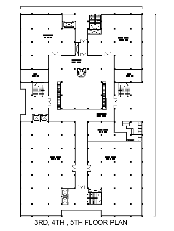 Column layout of 46x76m office 3rd, 4th& 5th floor plan is given in this AutoCAD model.Download now.