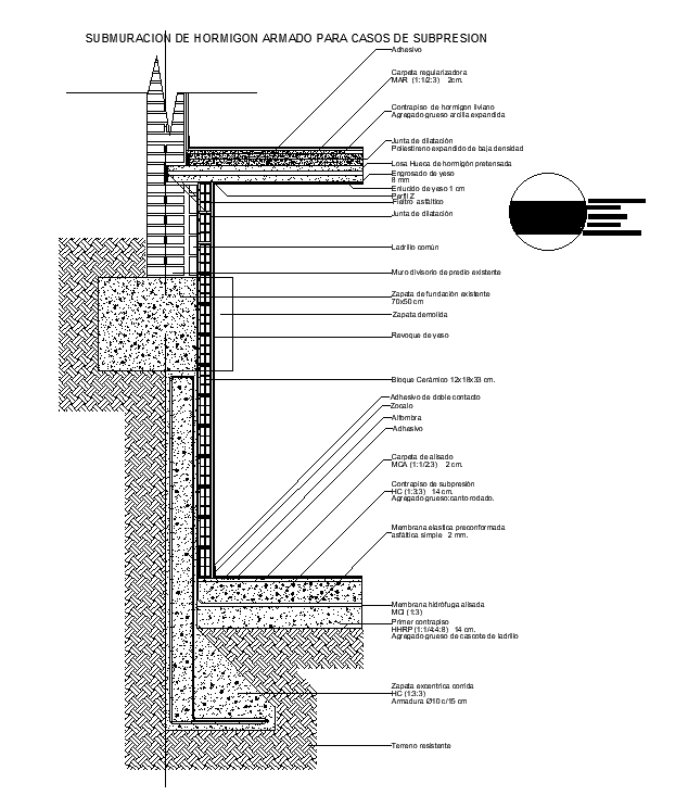 Submuration of reinforced concrete for cases of subpression structure is given in this AutoCAD model. Download now.