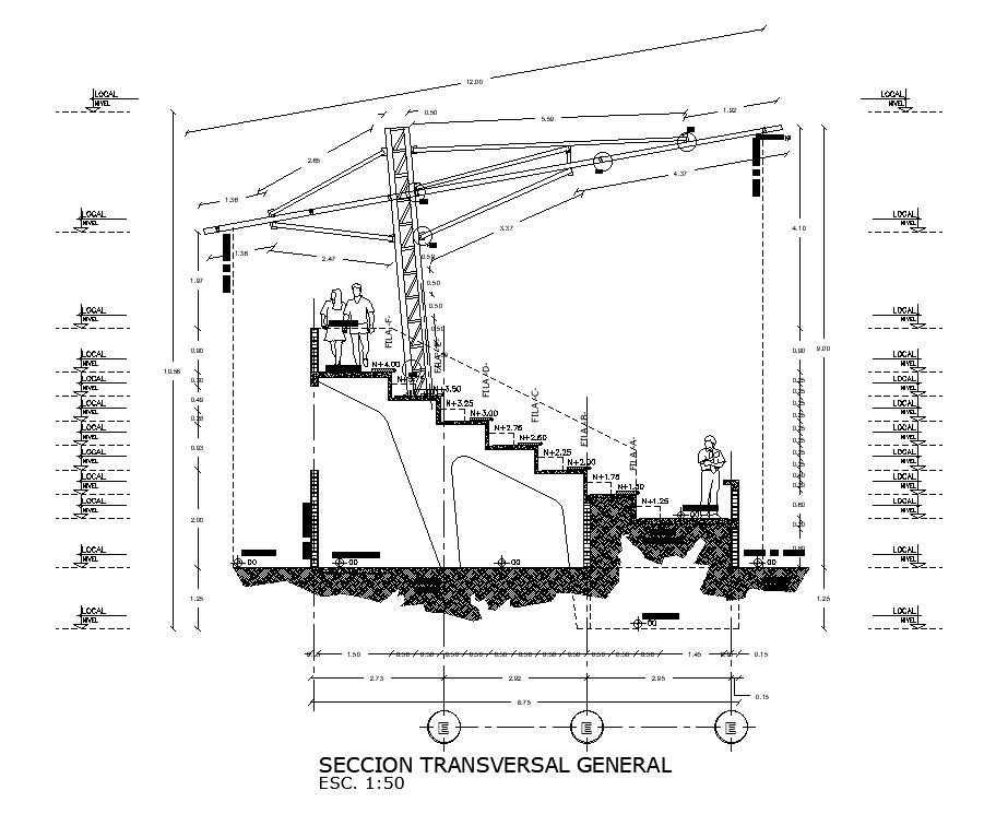 Transverse section view of 50x46m shopping mall is given in this AutoCAD drawing model. Download now.