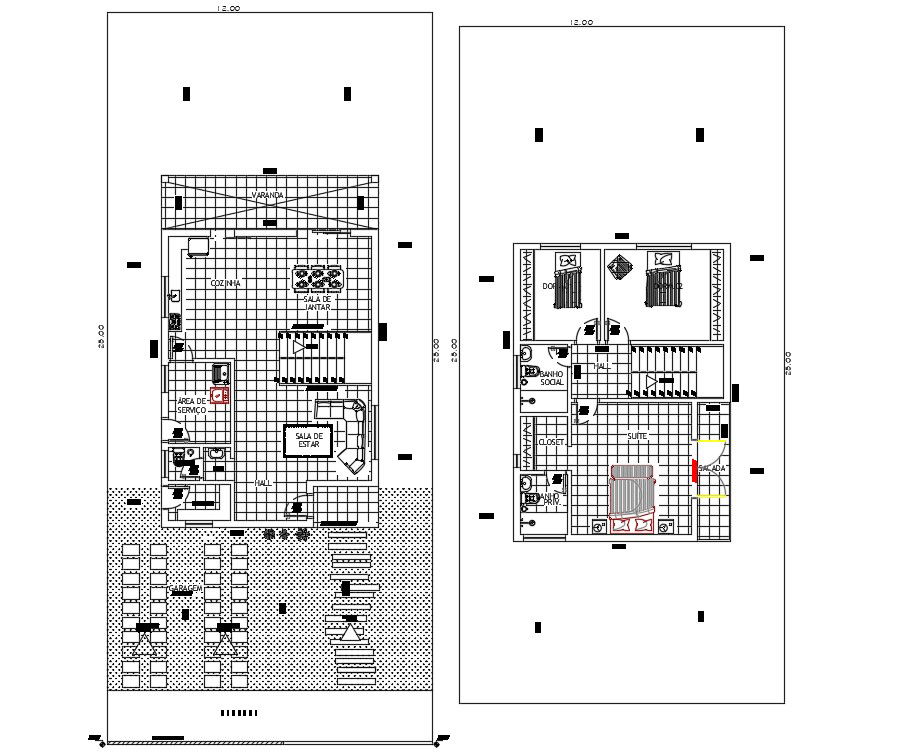 25X12 Meter House Ground Floor And First Floor Plan AutoCAD Drawing Download DWG File