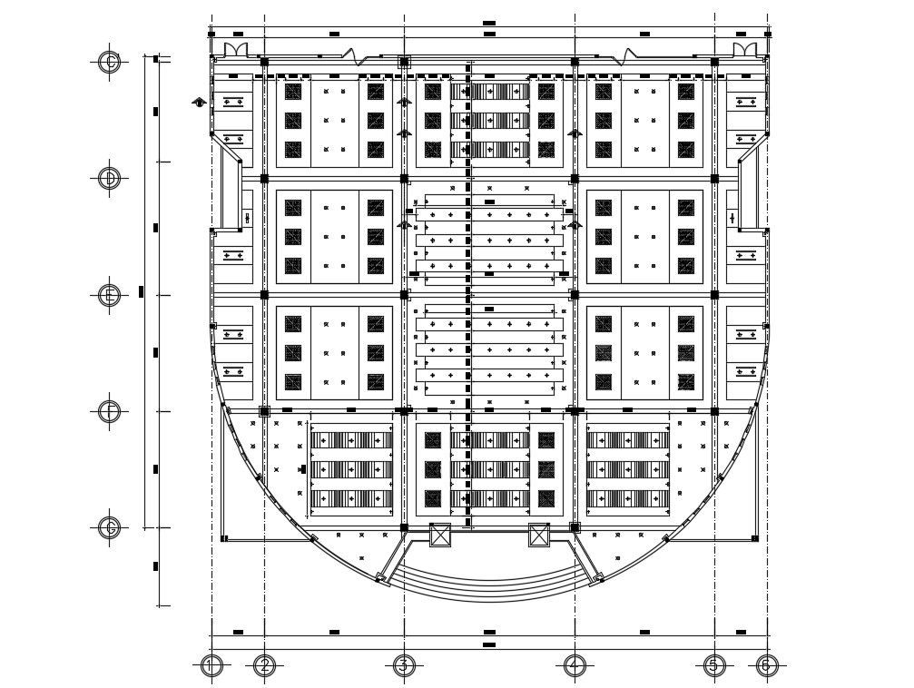 Column layout of 36x37m hotel plan is given in this Autocad drawing file. Download the Autocad model.