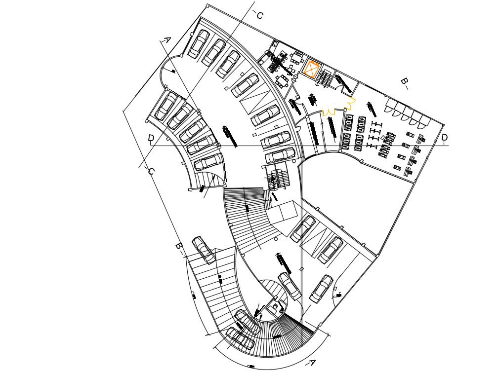 36x32m hotel cum multifunctional ground floor plan is given in this Autocad drawing file.Download the Autocad model.