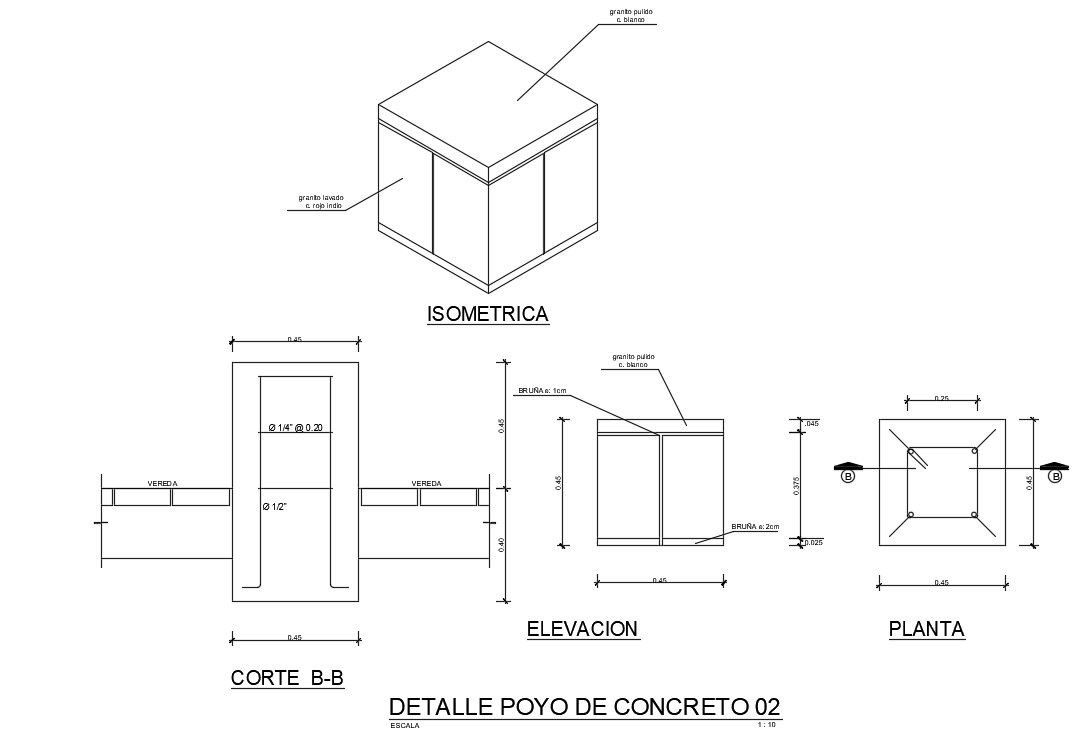 450x450mm Concrete poy detail drawing is given in this AutoCAD model. An elevation and section view of the concrete is given. Isometric view of the poy is given. For more details download the AutoCAD drawing file. Thank you for downloading the AutoCAD drawing file and other CAD program files from our cadbull website.