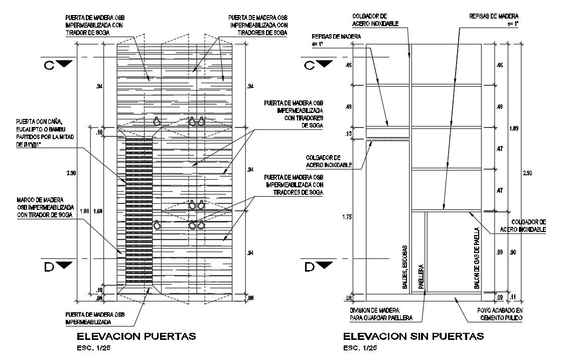 2900mm height of the wardrobe door section view is given in this AutoCAD drawing model. Download now.
