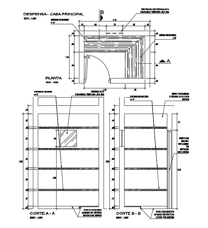The back side section view of the 1300x700mm wardrobe is given in this AutoCAD drawing model.Download now.