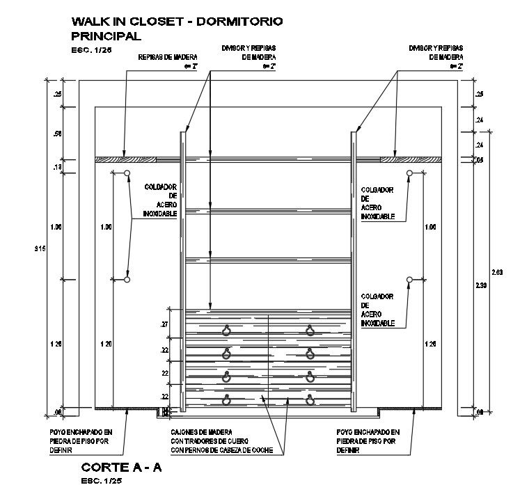 3150mm height of the wardrobe door section view is given in this AutoCAD drawing model. Download now.