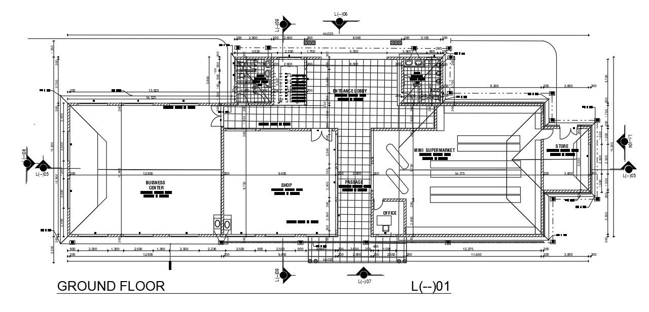 44x15m mini super market plan is given in this AutoCAD drawing model. This is G+ 1 super market building. Business center, shop, passage, mini supermarket, entrance lobby, gent’ toilet, ladies toilet, and stores are available. For more details download the AutoCAD drawing file. Thank you for downloading the AutoCAD drawing file and other CAD program files from our website.