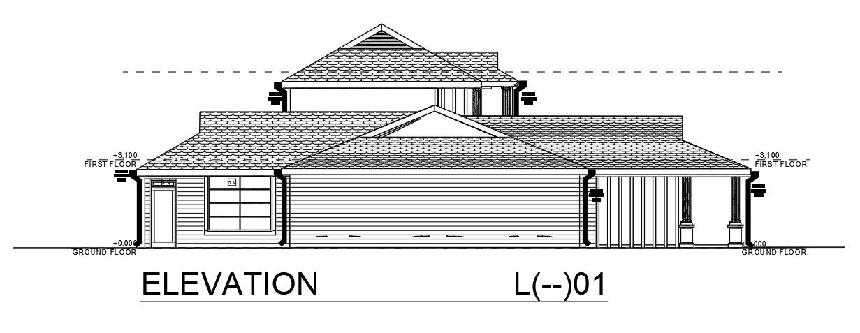 The left elevation view of the 42x15m club house is given in this AutoCAD drawing model.Download now.