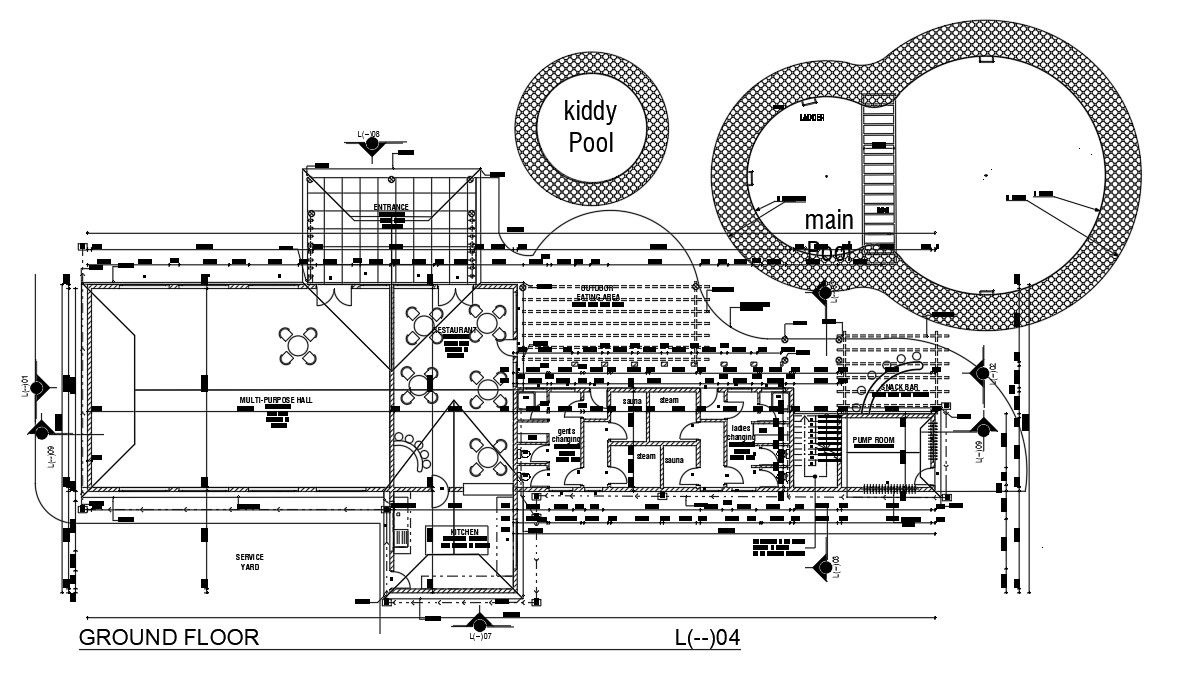 42x15m club house plan is given in this AutoCAD drawing model. This is G+ 1 club house building. The multipurpose hall, kitchen, service yard, massage room, gent’s changing room, ladies changing room, restaurant, outdoor eating area, snack bar, and pump room are available. For more details download the AutoCAD drawing file. Thank you for downloading the AutoCAD drawing file and other CAD program files from our website.