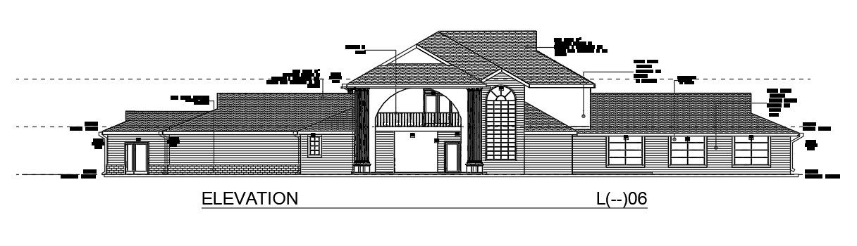 The left side elevation view of the 44x15m mini super market is given in this AutoCAD drawing model. Download now.