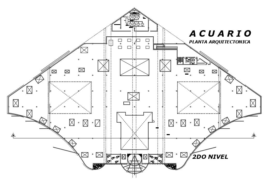 Aquarium architectural second floor plan is given in this AutoCAD drawing model. Download now.
