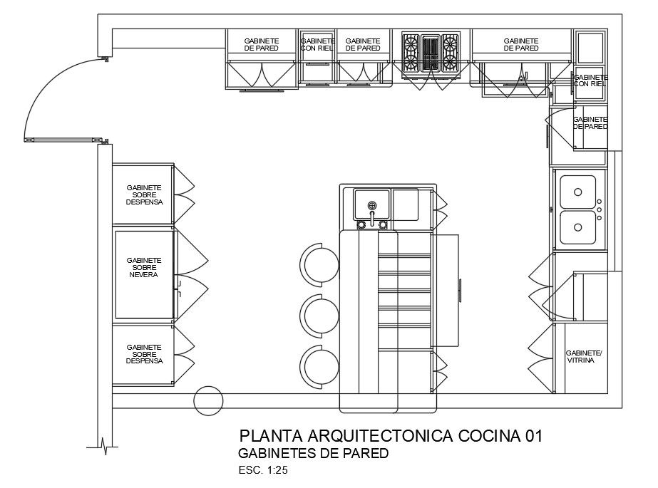 A layout of 5.4x4m kitchen plan is given in this AutoCAD drawing model. Total height of the kitchen is 3m. Microwave oven, drawers with rail, stove, sections, dishwasher, sink, breakfast table, wine tank, cabinet under plate, and other details are mentioned. For more details download the AutoCAD drawing file. Thank you for downloading the AutoCAD drawing file and other CAD program files from our website.