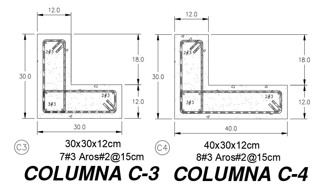 30x30x12cm column cross section view has been given in this AutoCAD drawing model. There is two sizes of columns are given. The dimension of the other column is 40x30x12cm. Reinforcement details are mentioned in this model. For more details download the AutoCAD drawing file. Thank you for downloading the AutoCAD drawing file and other CAD program files from our website.