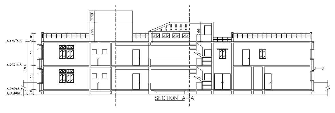 The front section view of the 57x23m luxury villa building is given in this AutoCAD drawing model.Download now.