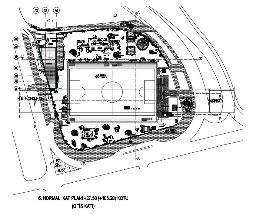 The dimension detail of the 171x142m hotel plan of basketball court plan is given in this AutoCAD drawing model. Download now.