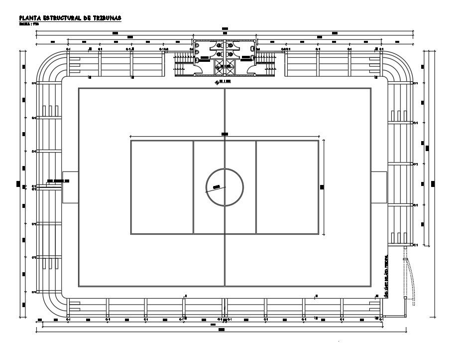 A layout of the 35x25m multi sports complex plan is given in this AutoCAD drawing model.