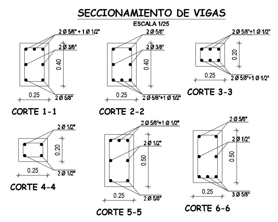 Cross section views of the beams are given in this AutoCAD model. Different sizes of the beam section views are given. Reinforcement details are specified in this model. For more details download the AutoCAD drawing file. Thank you for downloading the AutoCAD drawing file and other CAD program files from our website.