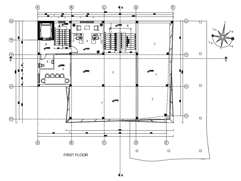 25x20m first floor commercial shop plan is given in this AutoCAD drawing model.  Download now.