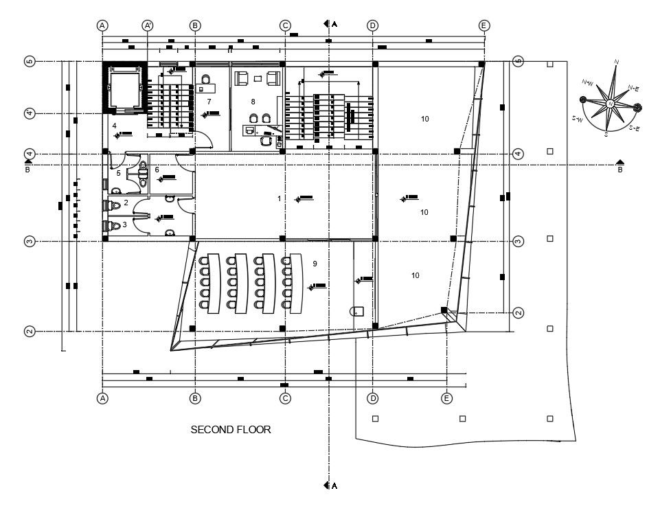 25x20m second floor commercial shop plan is given in this AutoCAD drawing model. Download now.
