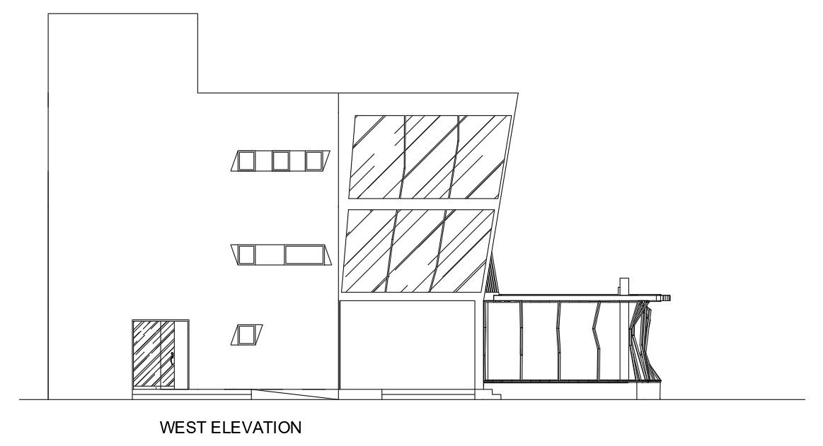 The west side elevation view of the 25x20m commercial building is given in this AutoCAD drawing model. Download now.