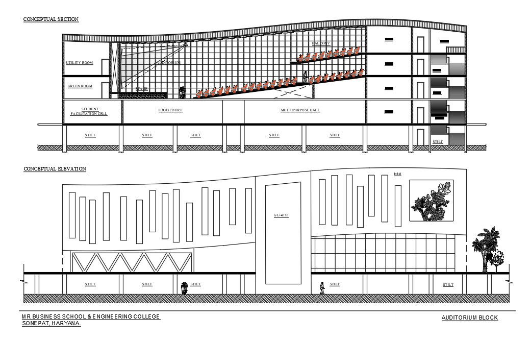 60x35m engineering college auditorium building is given in this AutoCAD drawing model. This is G+ 3 auditorium building. A kitchen, store room, gent’s toilet, ladies toilet, food court, changing room, office room, registration desk, multipurpose hall, student facilitation cell, and VIP room are available on the first floor. 2550mm wide passage, 1500mm wide passage, green room, lobby, gent’s toilet, ladies toilet, concession counter, pantry, service room, utility room, stage, and lifts are available on the second and upper floor. For more details download the AutoCAD drawing file. Thank you for downloading the AutoCAD drawing file and other CAD program files from our website.
