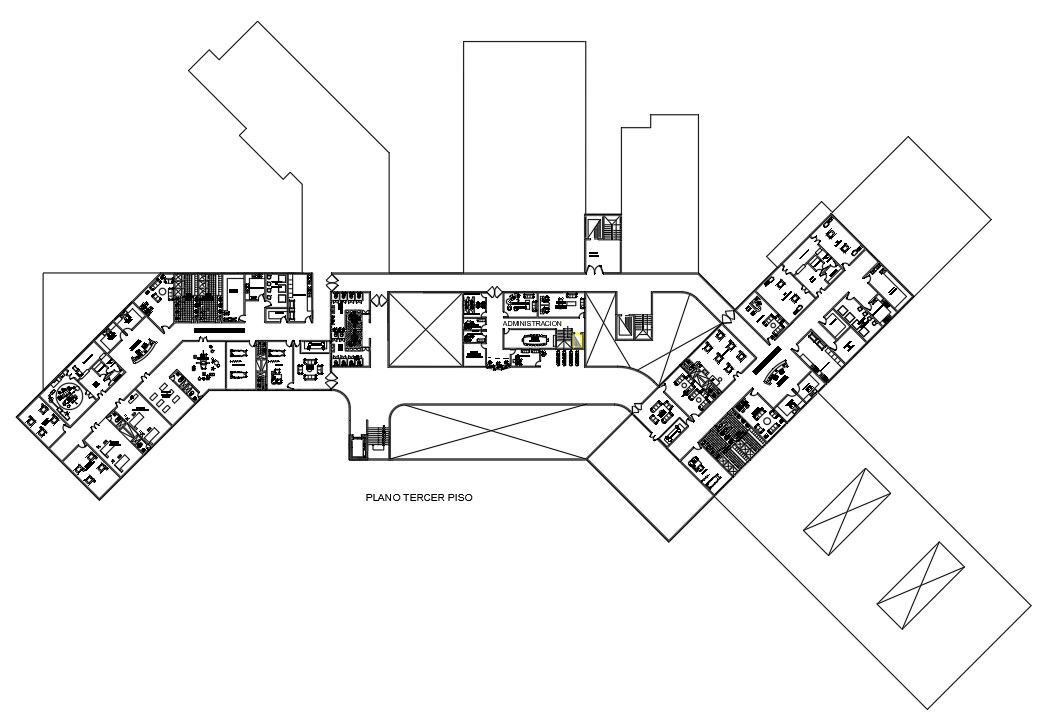The roof plan of 120x70m Multispecialty hospital plan has been given in this AutoCAD drawing model. This is G+ 4hospital building. On this hospital plan, obstetric demonstration, pediatric demonstration, men's demonstration, the doctor consulting room, nurse station, operation theatre, patient’s wards, x ray room, scan room, machinery room, rest room for doctors, waiting area, reception, pharmacy, account section, and other details are given. For more details download the AutoCAD drawing file. Thank you for downloading the AutoCAD files and other CAD program files from our website.