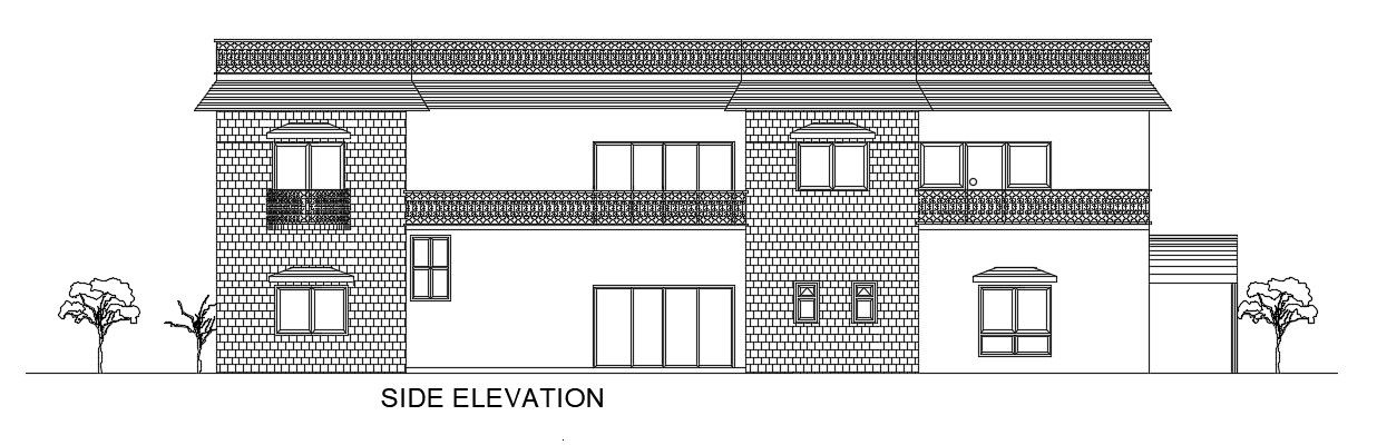 The side elevation view of the 63’x106’ house building is given in this AutoCAD drawing model.Download now.