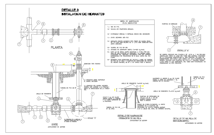 fire hydrant installation drawing, valve of britize compound, traffic type connection, the base should be installed to the lower barrel, concrete ring f'c = 210 kg / cm2., concrete ring.