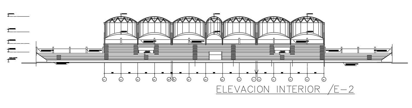 An interior elevation view of the 160x86m basketball stadium is given in this AutoCAD drawing model. Download now.
