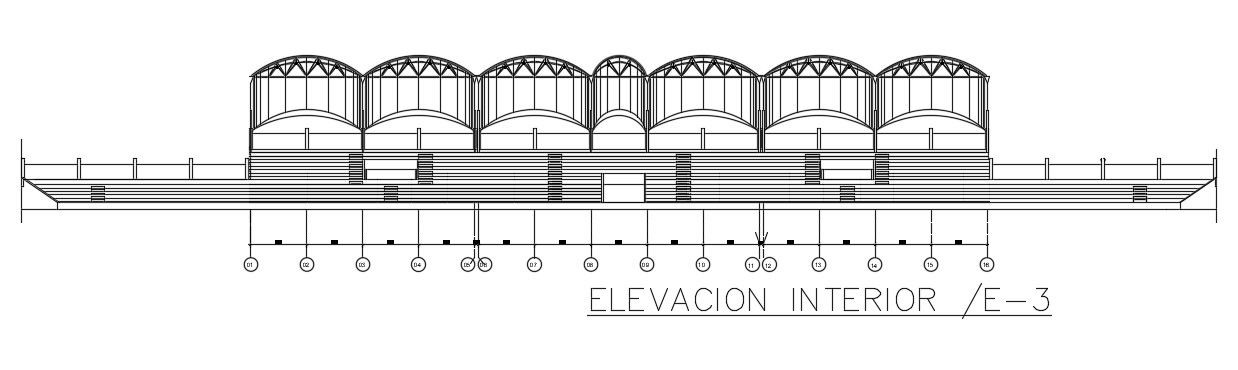 The back side interior elevation view of the 160x86m basketball stadium is given in this AutoCAD drawing model. Download now.