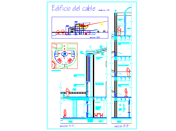 Build interior cable railing design. Sliding system sl4 / h2 fixed angle at 45 degrees, First level cafeteria, Ceilings hung on plasterboard modulated in .8x.8. Second level: lockers, information and shops.