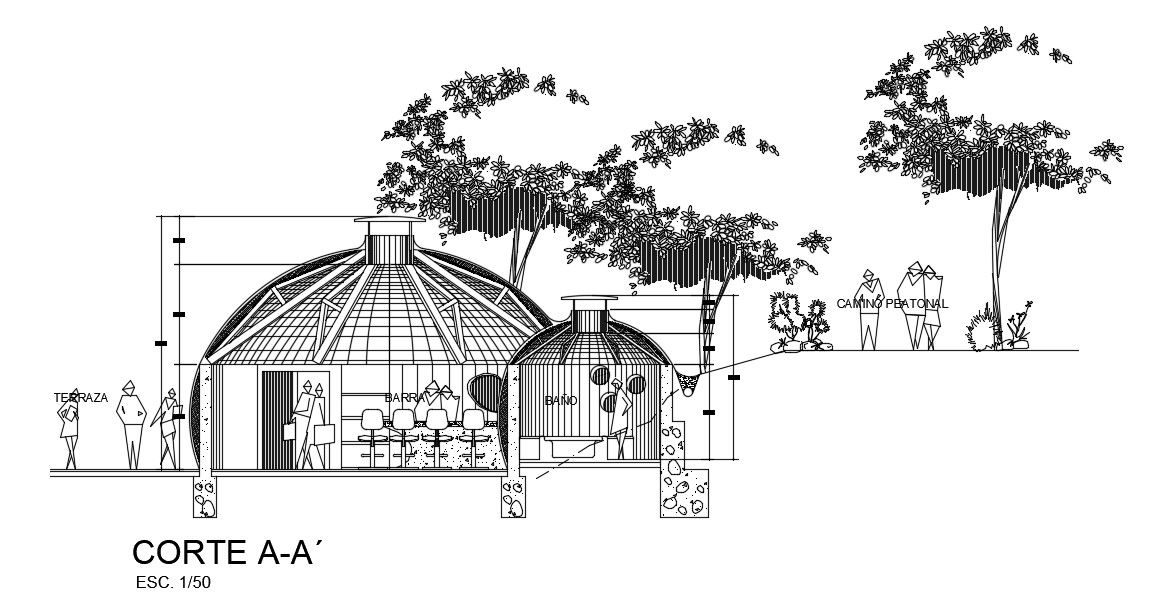 A section view of the circular guest house building is given in this AutoCAD drawing model. Download now.