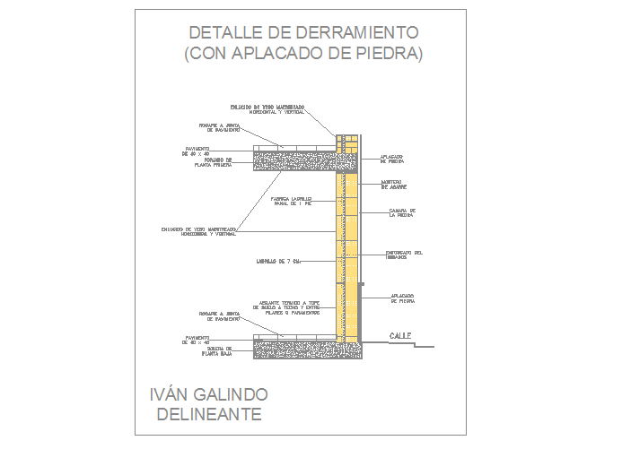 wall structure section cutting detail, roda pie the boar of pavement, thermal insulation the top from soil to ceiling and between pillars or parapet.