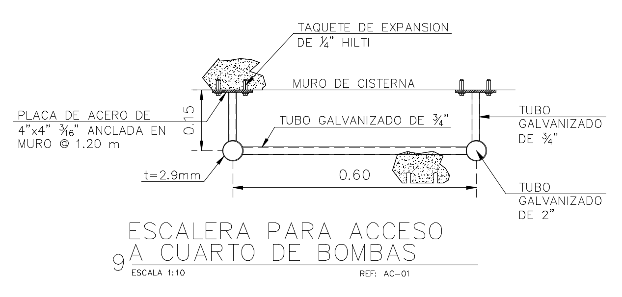 A ladder to access the pump room detail drawing is given in this AutoCAD model. Tube dimension details are given in this model. The length of the ladder structure is 0.6m. For more details download the AutoCAD drawing file. Thank you for downloading the AutoCAD drawing file and other CAD program files from our website.