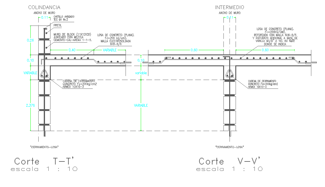 closure chain concrete f'c = 200kg / cm armex 10x10-3, wall of block (11x12x25) mixed joint cement-cal-arena 1-1-5.Reinforcement design for concrete slabs.