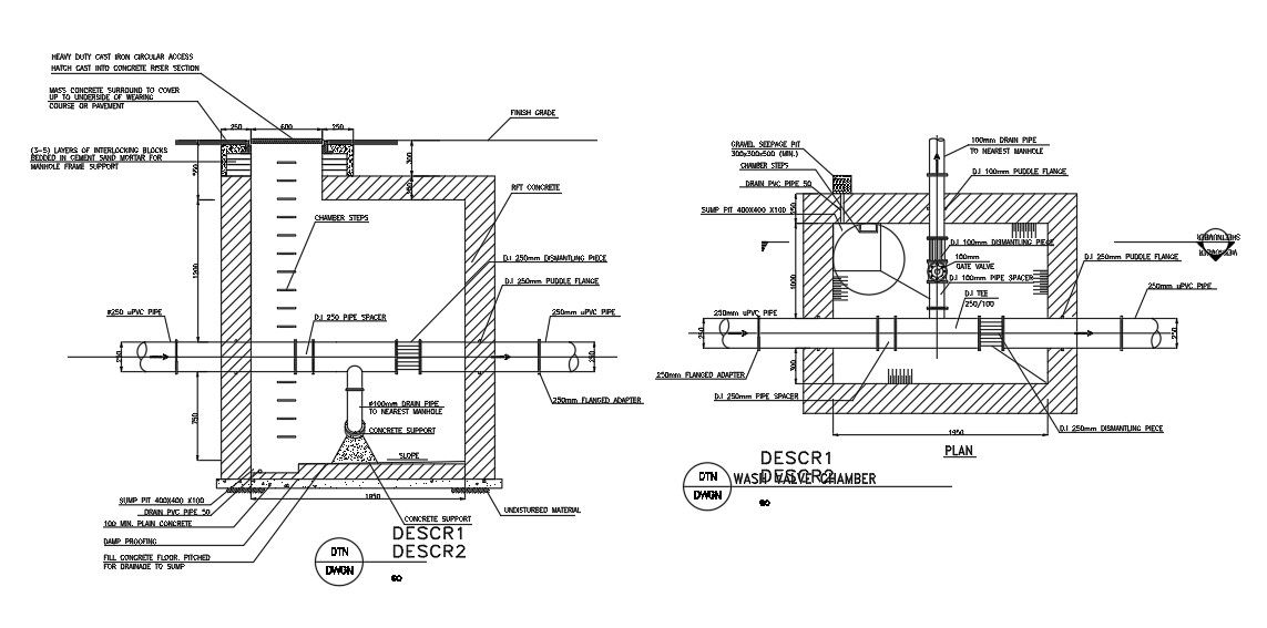 The construction detail of the wash valve chamber is given in this AutoCAD model. Download now.