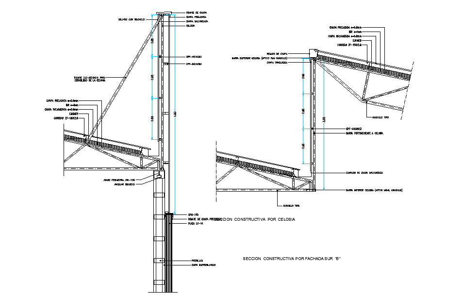 structural details dwg autocad drawing, superior bar (support fixed knife), galvanized and 0.6mm =