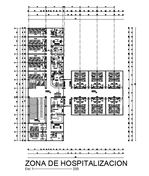 20x24m hospital plan is given in this AutoCAD model. Download now.