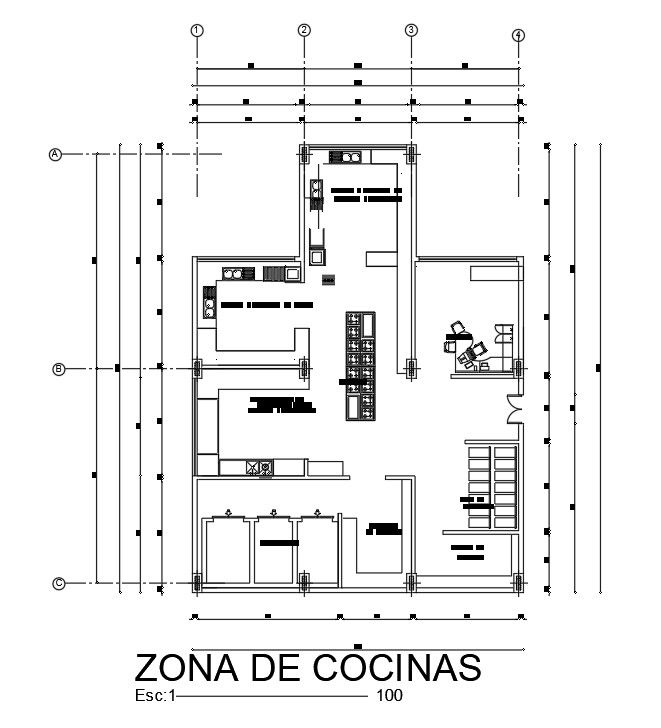 14x18m hospital kitchen plan is given in this AutoCAD drawing model. Download now.