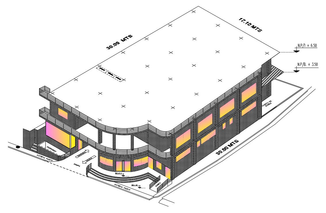An elevation view of the 30x17m hotel building is given in this AutoCAD model. Download now.