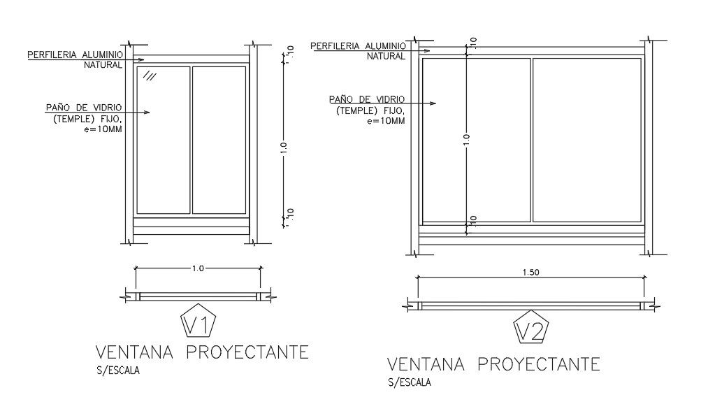 1x1.2m window projection plan is given in this AutoCAD drawing model. Download now.