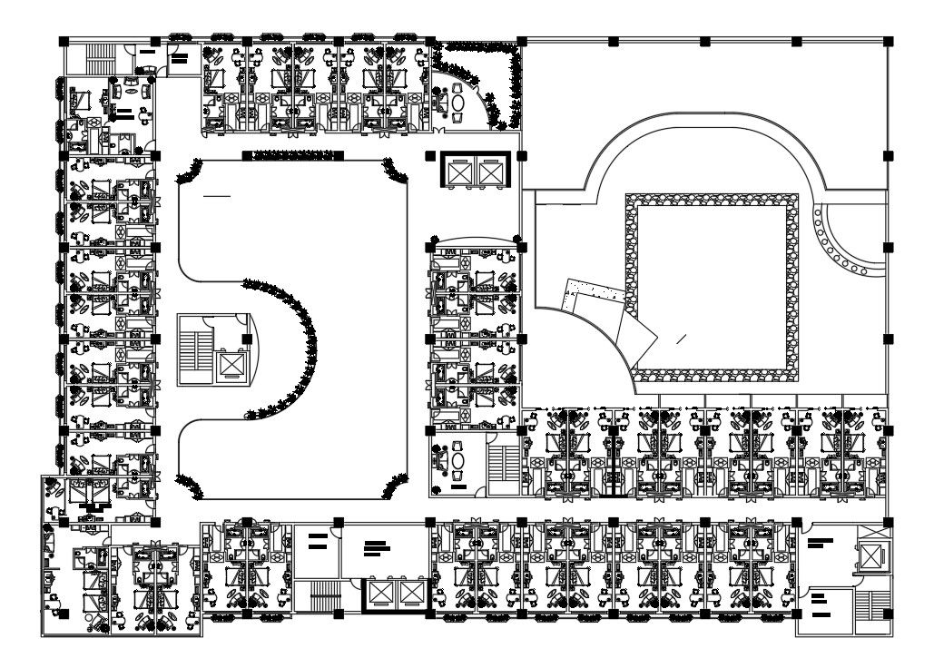72x52m 12th floor hotel plan is given in this is AutoCAD drawing model. Download now.