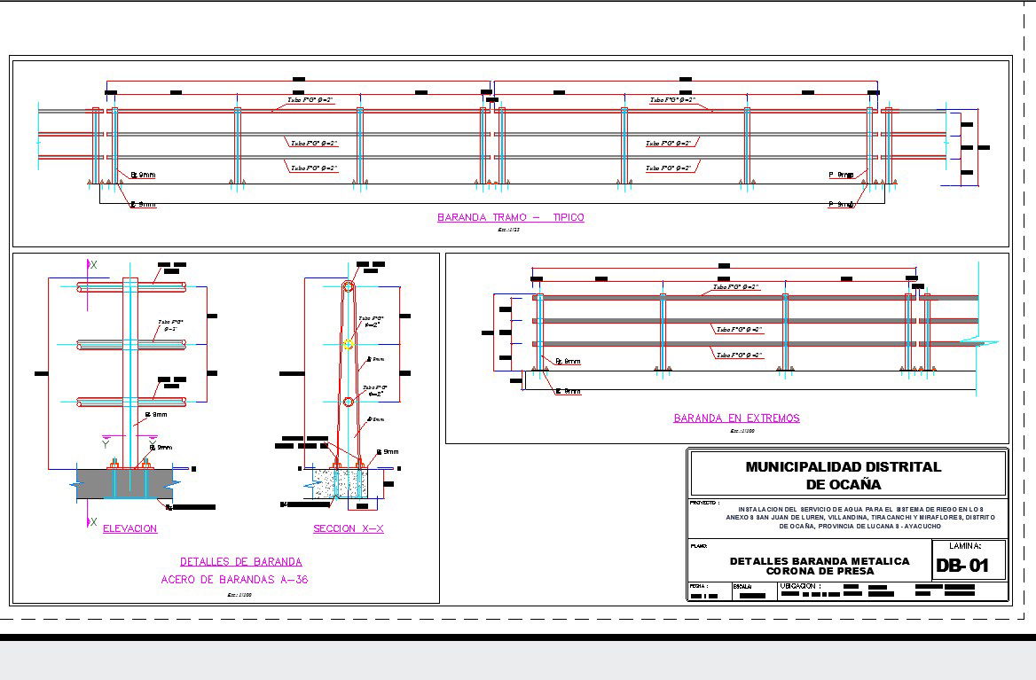 Railing design and detail autocad dwg files inlcude plan, elevations and section of railing design.