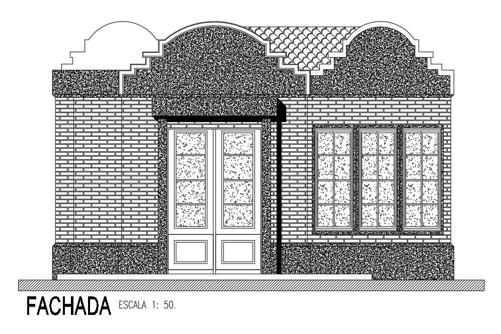 The front elevation view of the 5x8m office building is given in this AutoCAD drawing model. Download now.