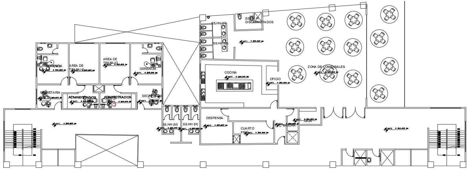 The commercial building layout plan AutoCAD drawing that shows office cebine, work desk area, wide lone gallery, 2 staircase, lift, restaurant cafeteria, kitchen, dining area, and toilet with all furniture design and very precise on dimension and clearance detail dwg file. For more details download the AutoCAD drawing file. Thank you for downloading the AutoCAD drawing file and other CAD program files from our website.