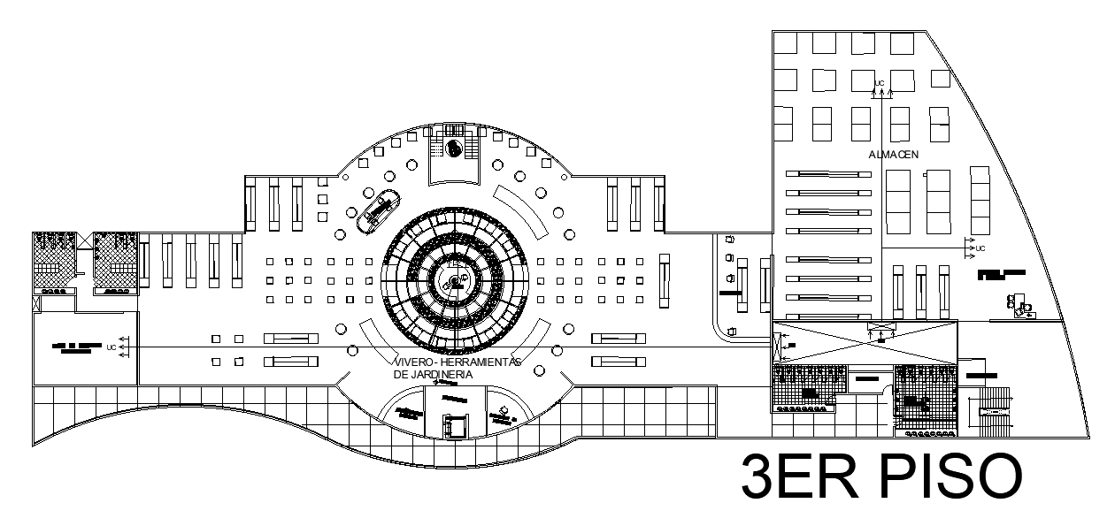 300’x237’ third floor commercial shop plan is given in this AutoCAD drawing model. Download now.