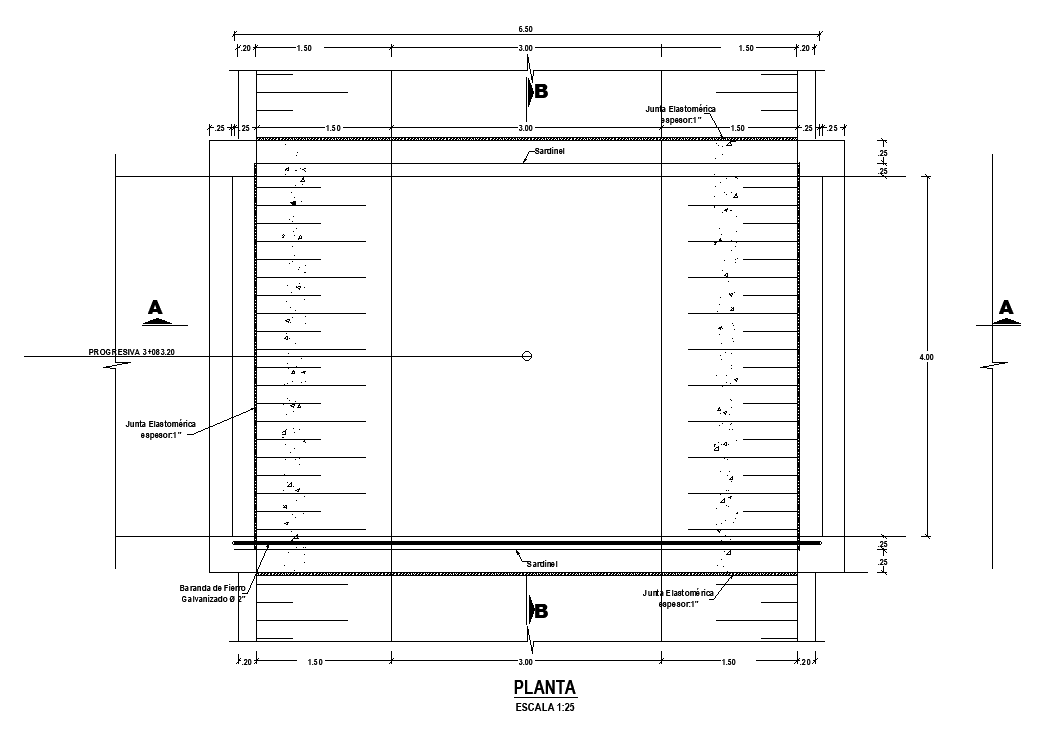 A layout of the 7x4m bridge plan is given in this AutoCAD drawing model. Download now.