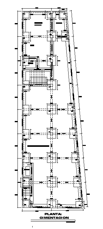 The foundation layout of the 34x10m first floor house plan is given in this AutoCAD drawing model. Download now.