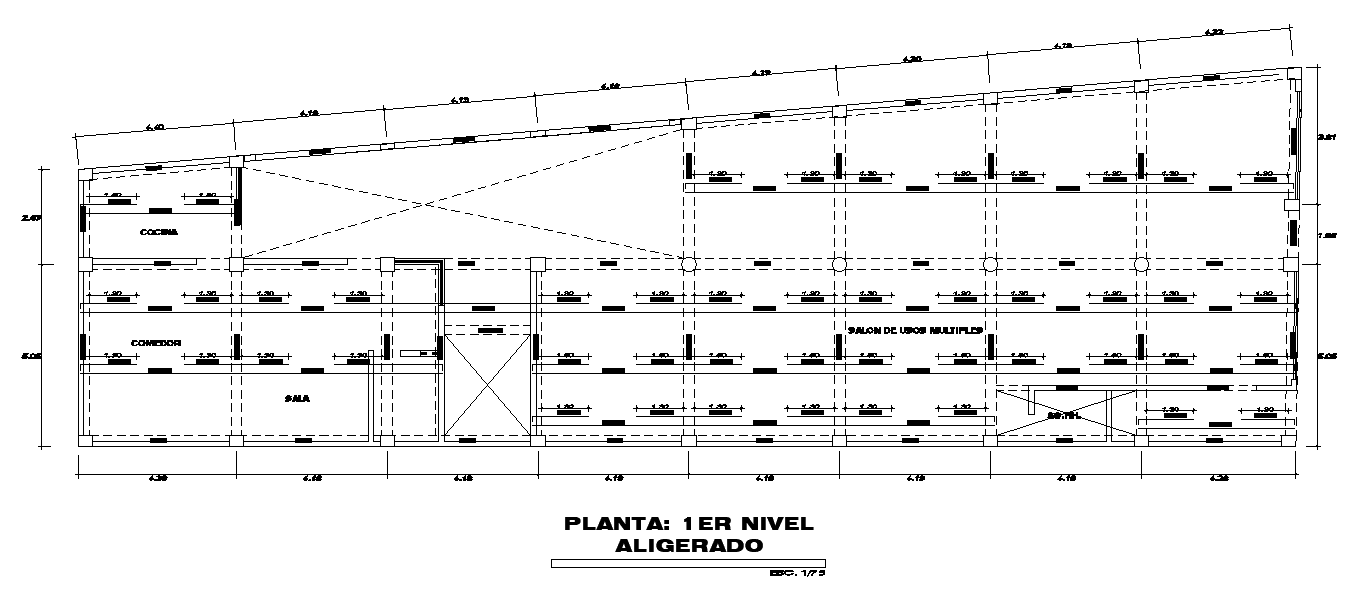 The column layout of the 34x10m first floor house plan is given in this AutoCAD drawing model. This is G+ 1 house building. A kitchen, dining area, living room, and common bathroom are available on the first floor. For more details download the AutoCAD drawing file. Thank you for downloading the AutoCAD files and other CAD program files from our website.